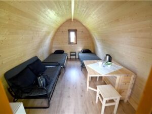 Ces 2 grands PODS sont équipés d’un lit double et d’un canapé lit qui peut accueillir 2 personnes supplémentaires (des enfants de préférence).