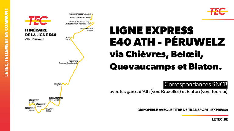 Le TEC propose une nouvelle ligne rapide, la E40 reliant Ath et Péruwelz.